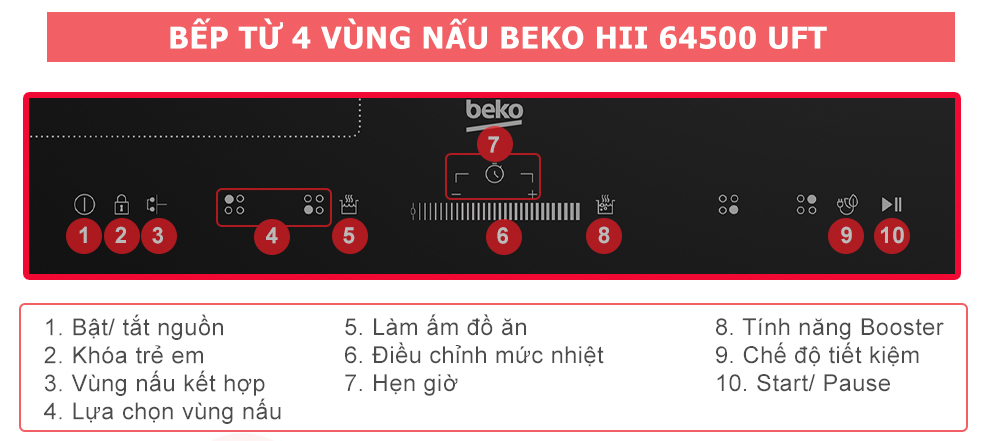 | Tên sản phẩm | Bếp từ âm Beko HII 64500 UFT |