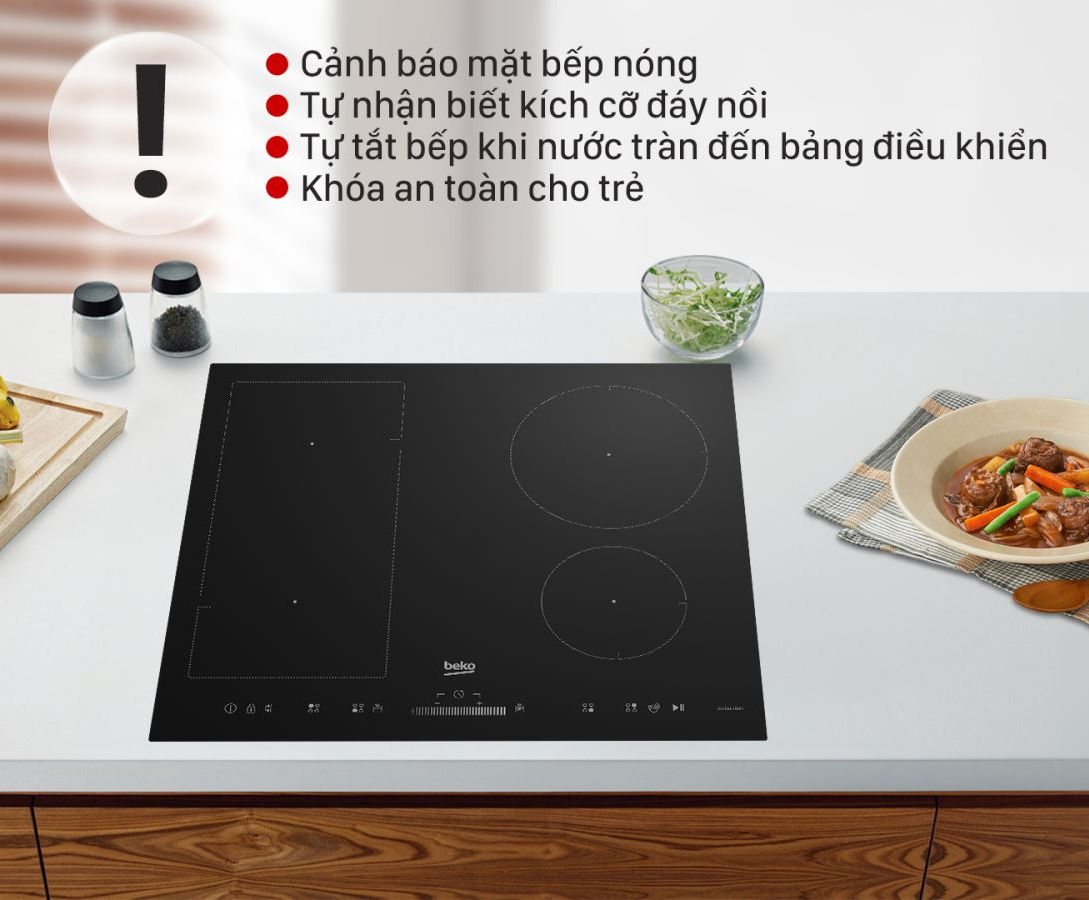 Ngoài các chức năng nấu nướng hiện đại và tiện lợi, Bếp từ Beko HII 64500 UFT được trang bị các tính năng an toàn tiên tiến, giúp bạn yên tâm nấu nướng và bảo vệ gia đình khỏi những nguy hiểm tiềm ẩn.