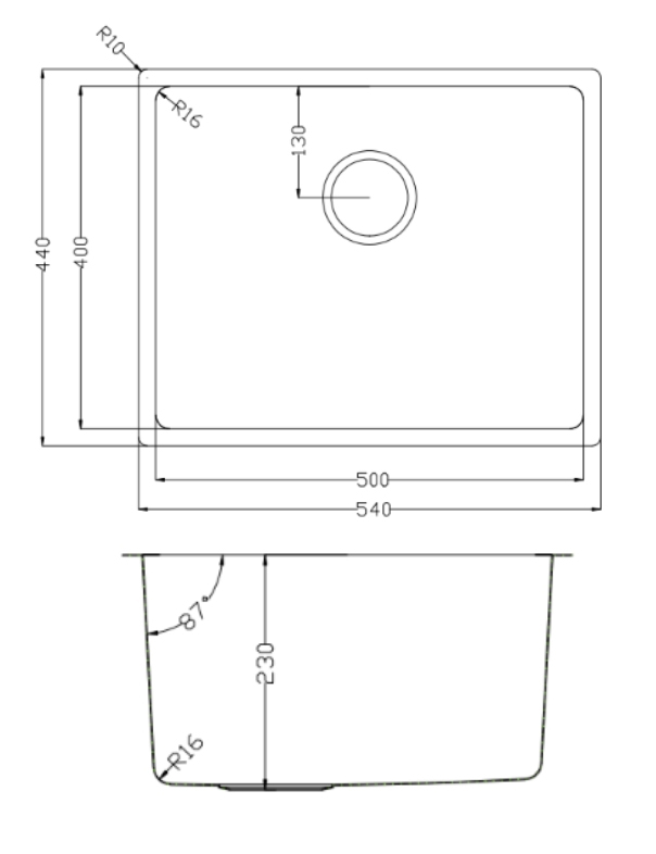 - Vệ sinh lòng chậu dễ dàng với góc lượn R16 mm.