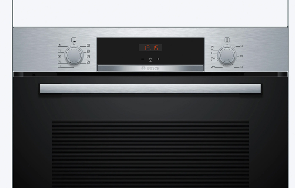 Lò nướng Bosch HBA514BS3 được trang bị màn hình LED hiện đại với tông màu đỏ nổi bật, mang đến giao diện trực quan và dễ sử dụng. Dễ dàng quan sát ngay cả trong điều kiện ánh sáng yếu. Các ký hiệu hiển thị rõ ràng, kết hợp cùng núm xoay cơ học tiện lợi, giúp quá trình nấu nướng trở nên thoải mái và chính xác hơn.