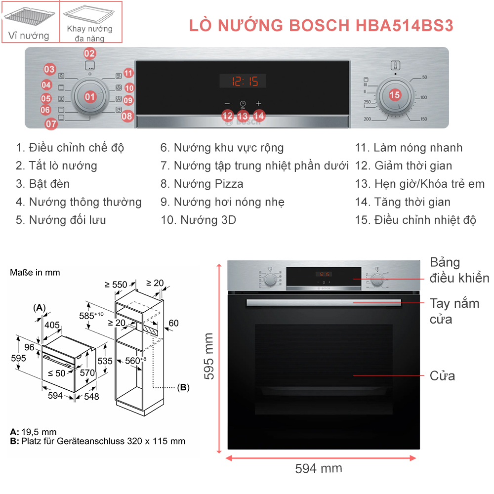 Tổng quan về sản phẩm Lò nướng Bosch HBA514BS3