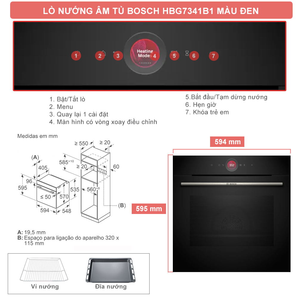 Tổng quan về sản phẩm Lò nướng Bosch HBG7341B1 Serie 8
