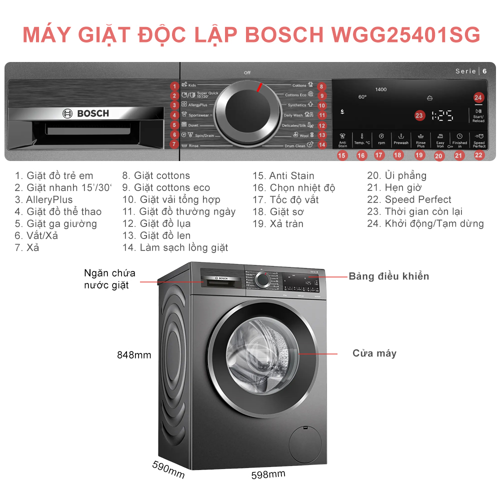 Thông số kỹ thuật Máy giặt Bosch WGG25401SG 10Kg