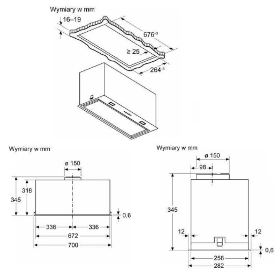 Kích thước lắp đặt (CxRxS) 345 x 676 x 264mm