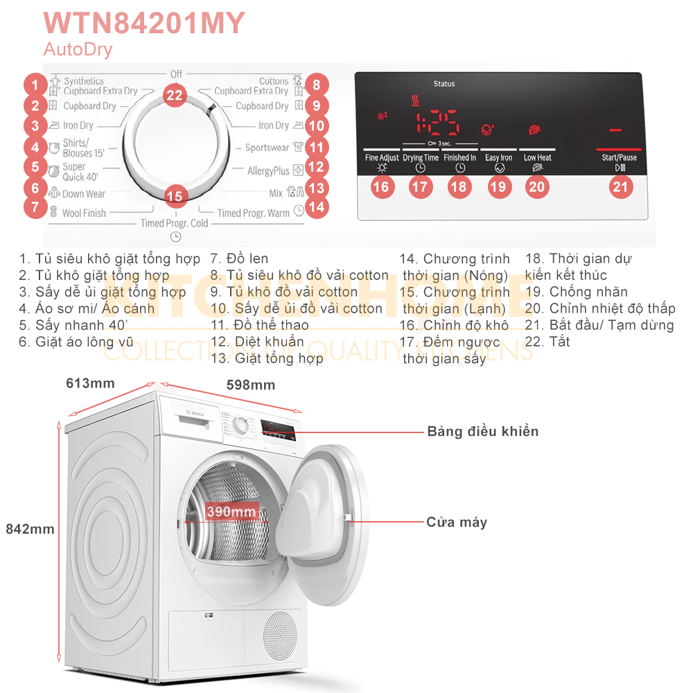 | Tên sản phẩm | Máy sấy Bosch WTN84201MY |