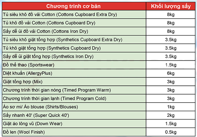 Lựa chọn thêm 7 chương trình bổ sung hỗ trợ quá trình sấy quần áo: