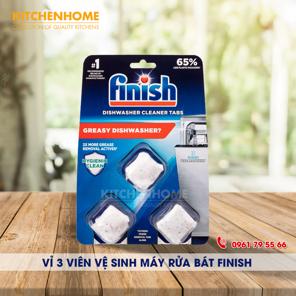 - Viên vệ sinh máy rửa bát Finish – Vỉ 3 viên được sản xuất và phân bố trên thị trường để thực hiện các chức năng như sau: