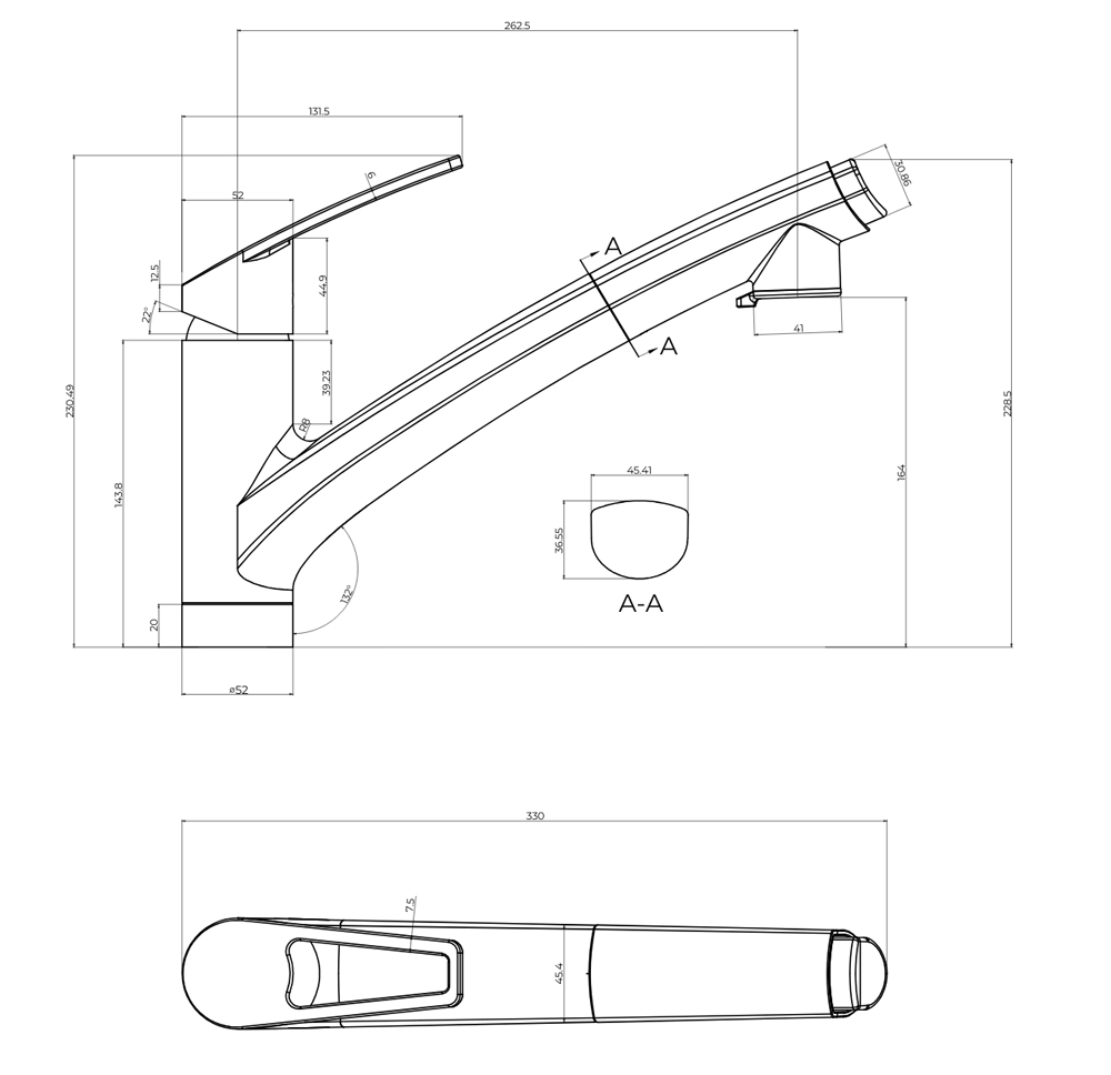 – Hình dáng: Vòi dáng thấp phong cách Nhật Bản