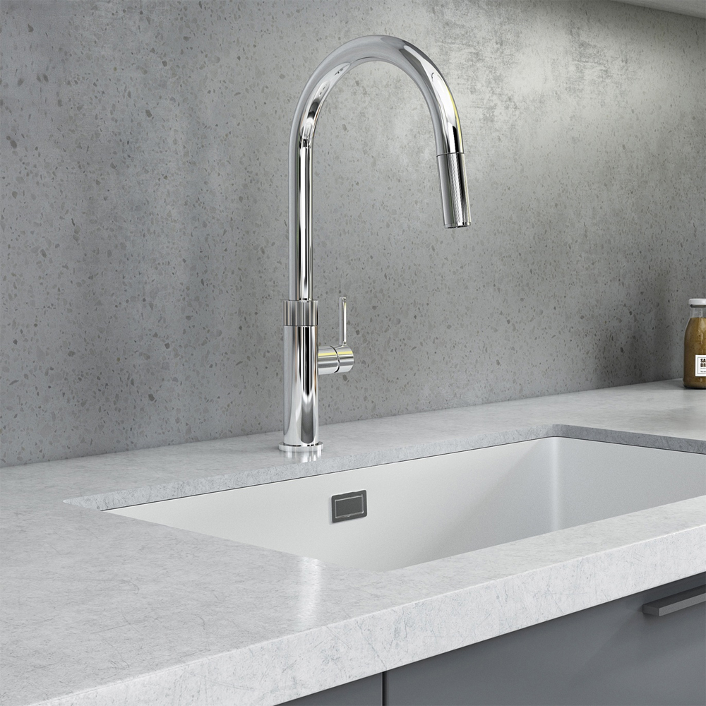 Vòi rửa dây rút Konox Lasi Chrome sở hữu thiết kế uốn cong mềm mại, tối giản nhưng đầy khí chất, Konox Lasi Chrome mang đến điểm nhấn sang trọng cho mọi căn bếp hiện đại. Vòi bếp Konox Lasi trang bị 2 đường nước nóng lạnh, đầu vòi rút dây và thân xoay 360°, mang đến tiện nghi, tiết kiệm nước và an toàn cho sức khỏe. 2 chế độ xả nước pha lê và phun mưa giúp rửa sạch nhanh chóng và hạn chế bắn nước ra ngoài.